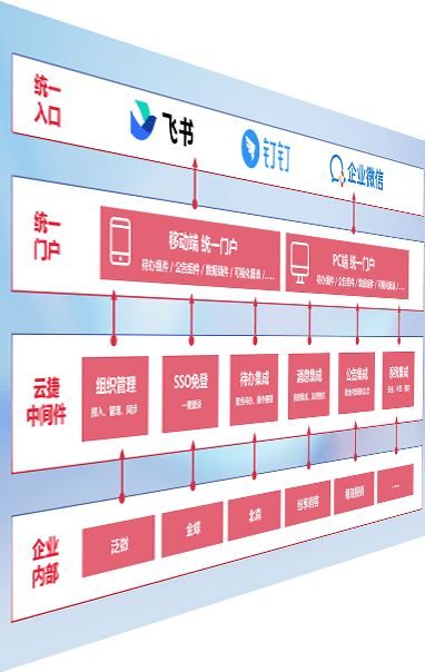 对协作平台提供支持服务,,支持企业应用与协作平台对接,,,包含组织同步、、、消息集成、、、待办集成等。。。。支持目前主流的协作平台:钉钉、、企微和飞书。。
